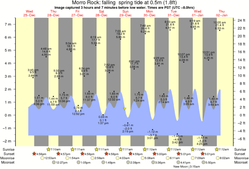 Image captured 3 hours and 7 minutes before low water (falling spring tide). Tide height was 0.5m (1.8 ft). Range 8.25m (27.1 ft). Toggle tide graph