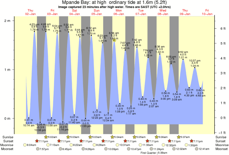 Forecast wind and swell just offshore from Mpande Bay around the time the photo was taken