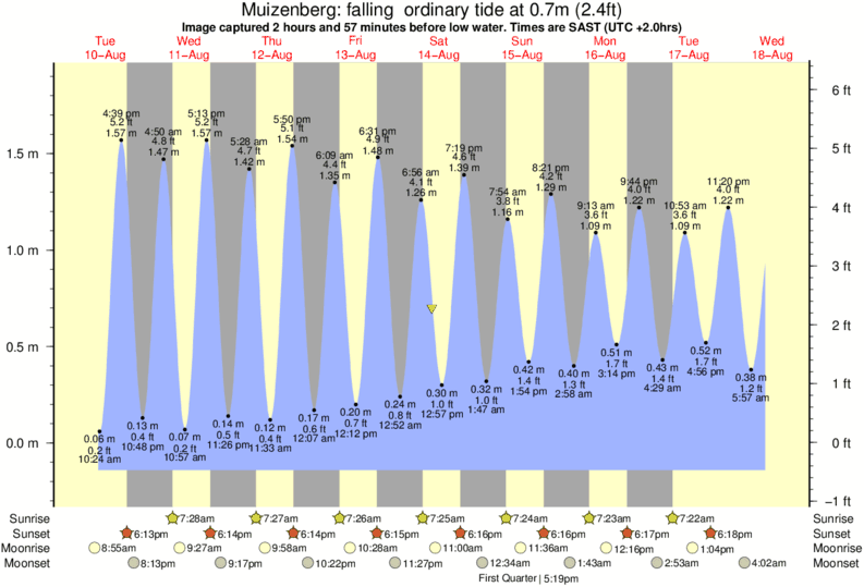 Forecast wind and swell just offshore from Muizenberg around the time the photo was taken