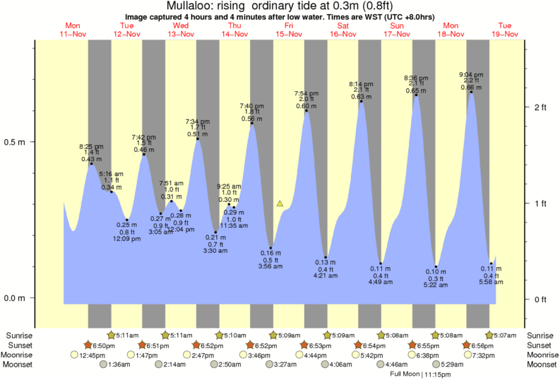 Image captured 4 hours and 4 minutes after low water (rising ordinary tide). Tide height was 0.3m (0.8 ft). Range 0.77m (2.5 ft). Toggle tide graph