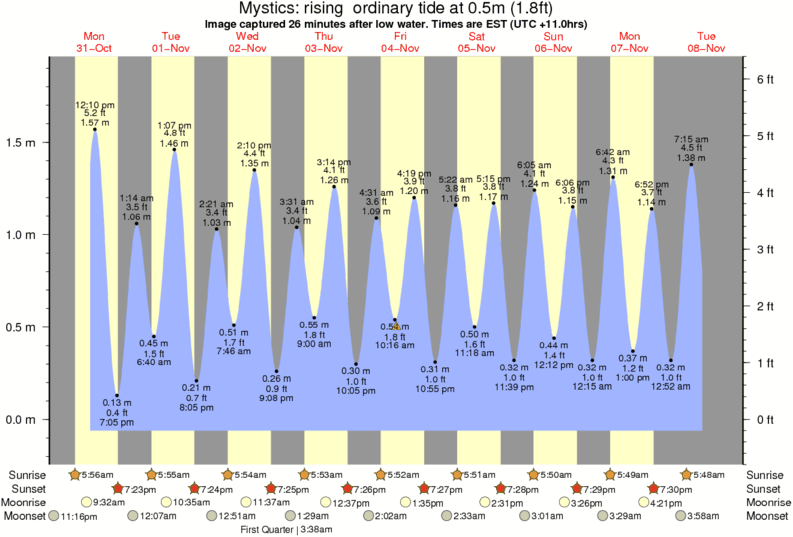 Forecast wind and swell just offshore from Mystics around the time the photo was taken