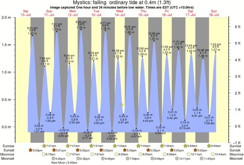 Image captured One hour and 34 minutes before low water (falling ordinary tide). Tide height was 0.4m (1.3 ft). Range 1.91m (6.3 ft). Toggle tide graph