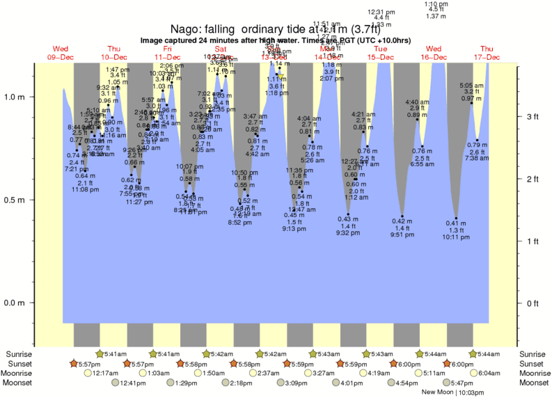 Forecast wind and swell just offshore from Nago around the time the photo was taken