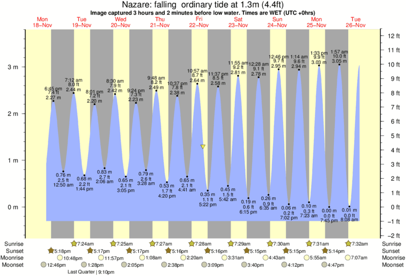Forecast wind and swell just offshore from Nazare around the time the photo was taken