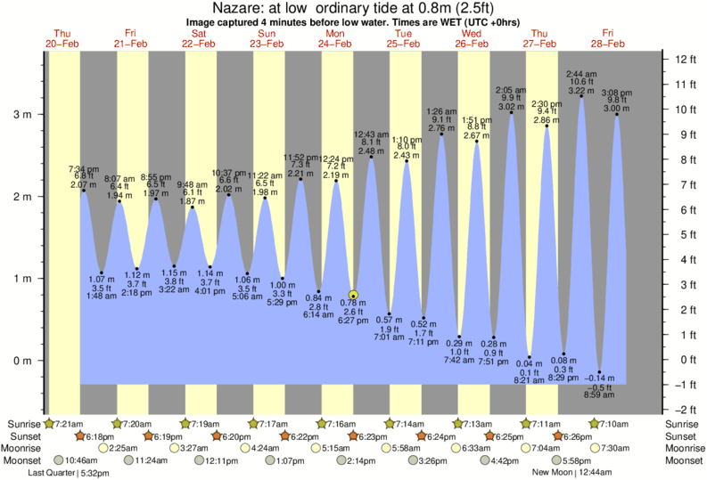 Forecast wind and swell just offshore from Nazare around the time the photo was taken