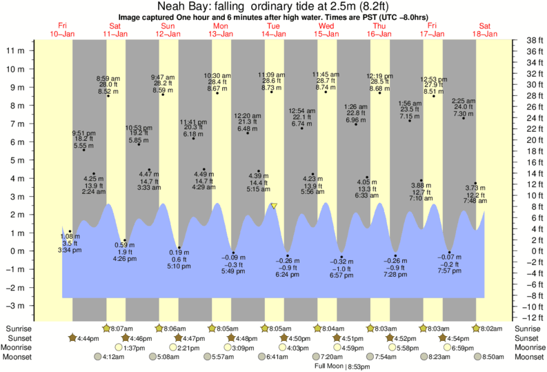 Image captured One hour and 6 minutes after high water (falling ordinary tide). Tide height was 2.5m (8.2 ft). Range 12.89m (42.3 ft). Toggle tide graph