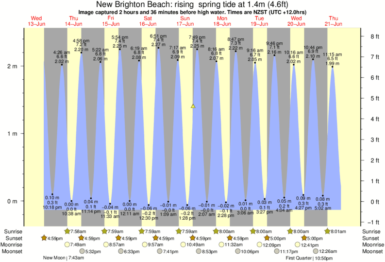 Forecast wind and swell just offshore from New Brighton Beach around the time the photo was taken