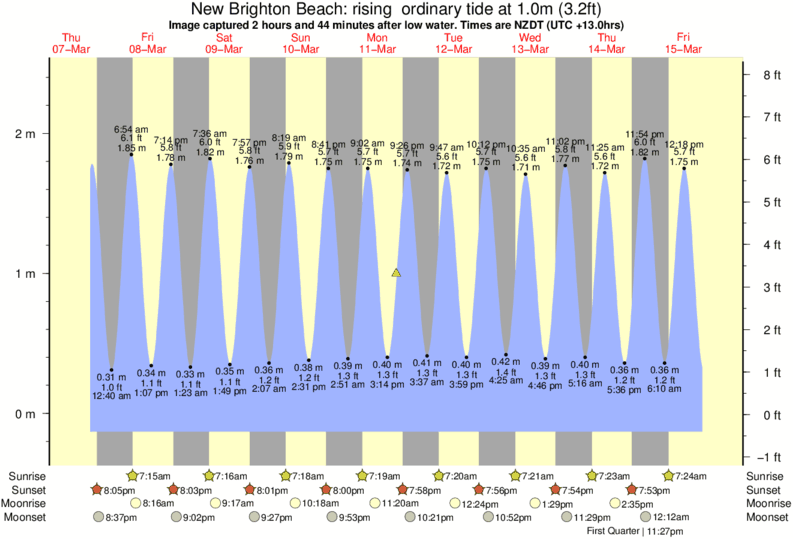 Image captured 2 hours and 44 minutes after low water (rising ordinary tide). Tide height was 1.0m (3.2 ft). Range 2.43m (8.0 ft). Toggle tide graph