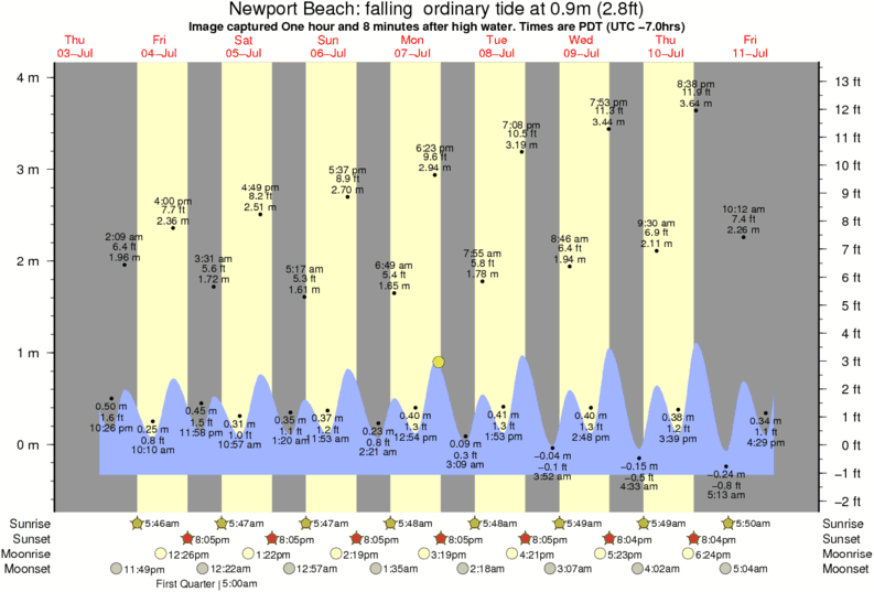 Forecast wind and swell just offshore from Newport Beach around the time the photo was taken