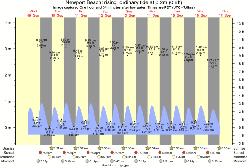 Forecast wind and swell just offshore from Newport Beach around the time the photo was taken