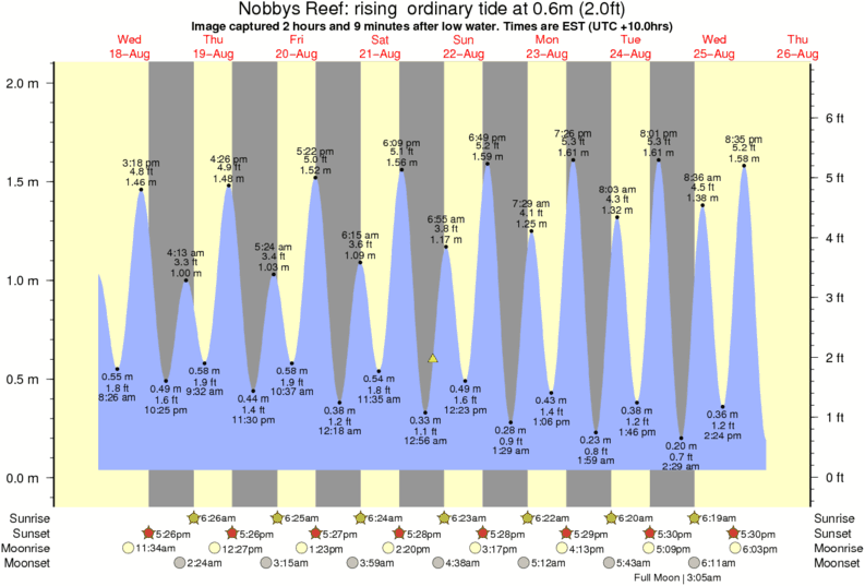 Forecast wind and swell just offshore from Nobbys Reef around the time the photo was taken