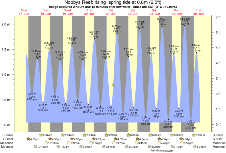 Forecast wind and swell just offshore from Nobbys Reef around the time the photo was taken