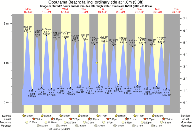 Image captured 2 hours and 47 minutes after high water (falling ordinary tide). Tide height was 1.0m (3.3 ft). Range 2.10m (6.9 ft). Toggle tide graph