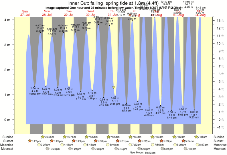 Image captured One hour and 36 minutes before low water (falling spring tide). Tide height was 1.3m (4.4 ft). Range 3.90m (12.8 ft). Toggle tide graph