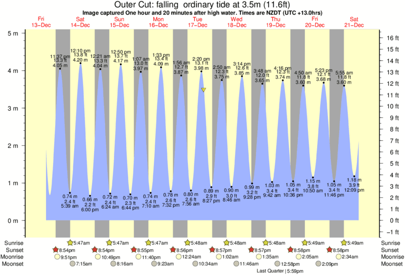 Image captured One hour and 20 minutes after high water (falling ordinary tide). Tide height was 3.5m (11.6 ft). Range 4.63m (15.2 ft). Toggle tide graph