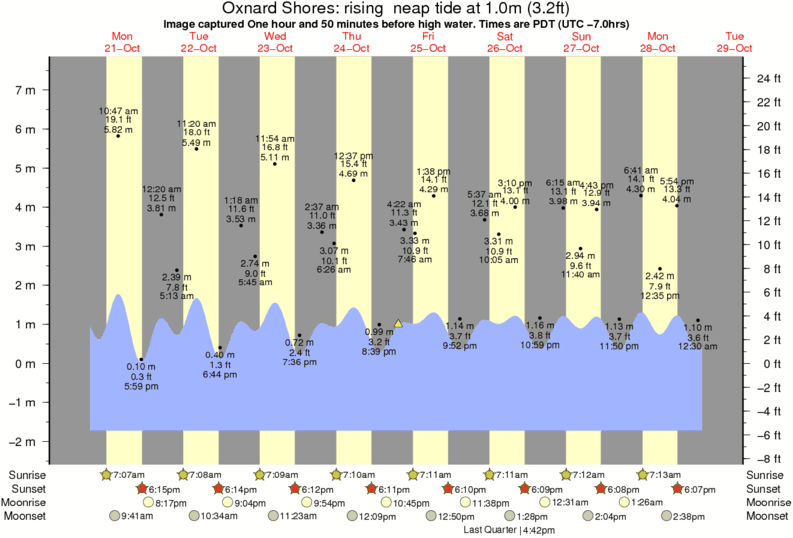 Forecast wind and swell just offshore from Oxnard Shores around the time the photo was taken