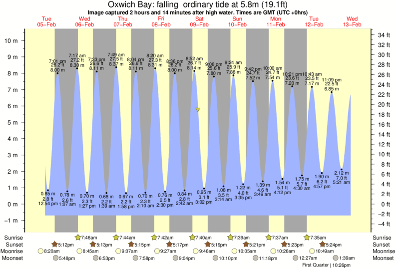 Image captured 2 hours and 14 minutes after high water (falling ordinary tide). Tide height was 5.8m (19.1 ft). Range 10.38m (34.1 ft). Toggle tide graph