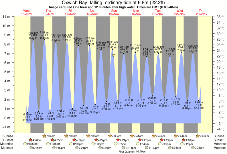 Image captured One hour and 12 minutes after high water (falling ordinary tide). Tide height was 6.8m (22.2 ft). Range 10.56m (34.6 ft). Toggle tide graph