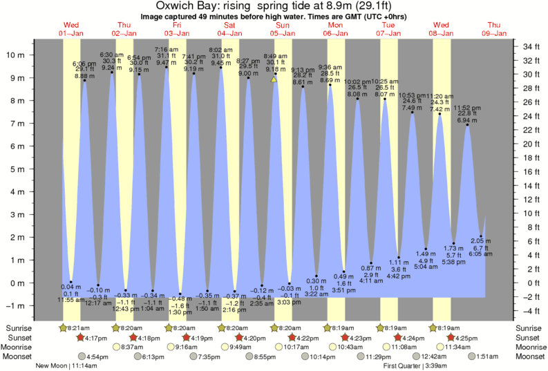 Image captured 49 minutes before high water (rising spring tide). Tide height was 8.9m (29.1 ft). Range 10.31m (33.8 ft). Toggle tide graph