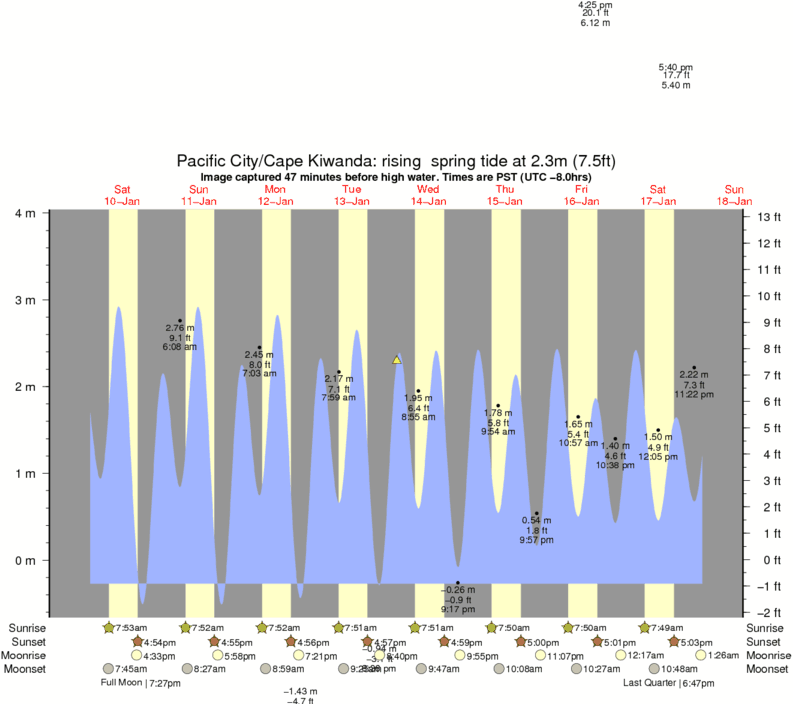 Image captured 47 minutes before high water (rising spring tide). Tide height was 2.3m (7.5 ft). Range 3.92m (12.9 ft). Toggle tide graph