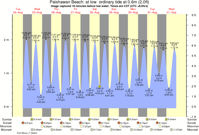 Forecast wind and swell just offshore from Paishawan Beach around the time the photo was taken