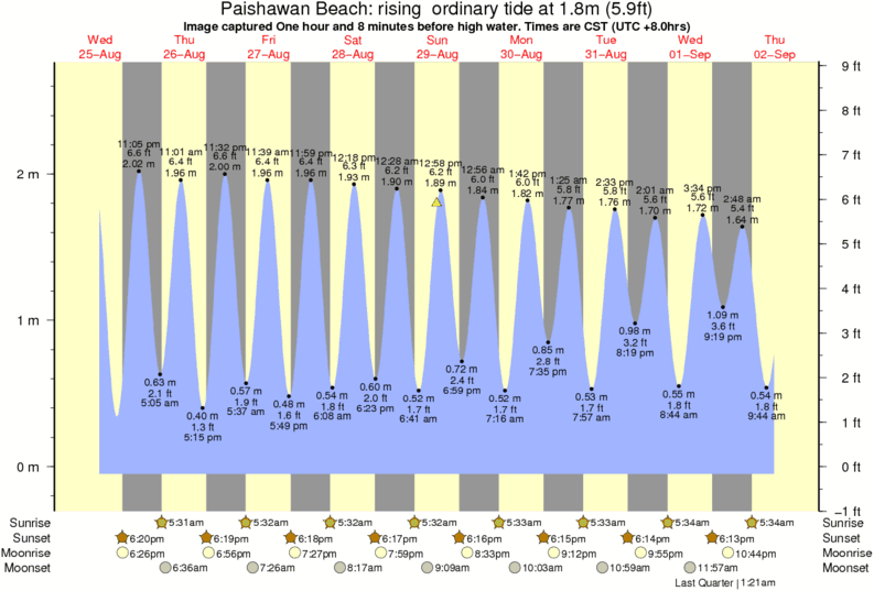 Forecast wind and swell just offshore from Paishawan Beach around the time the photo was taken