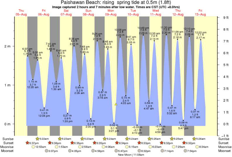 Forecast wind and swell just offshore from Paishawan Beach around the time the photo was taken