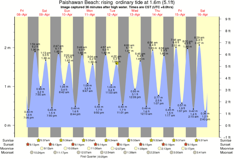 Forecast wind and swell just offshore from Paishawan Beach around the time the photo was taken