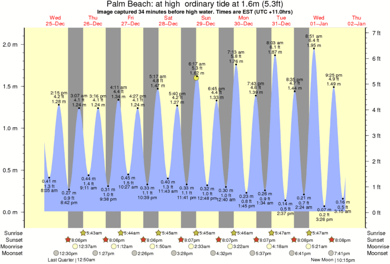 Forecast wind and swell just offshore from Palm Beach around the time the photo was taken