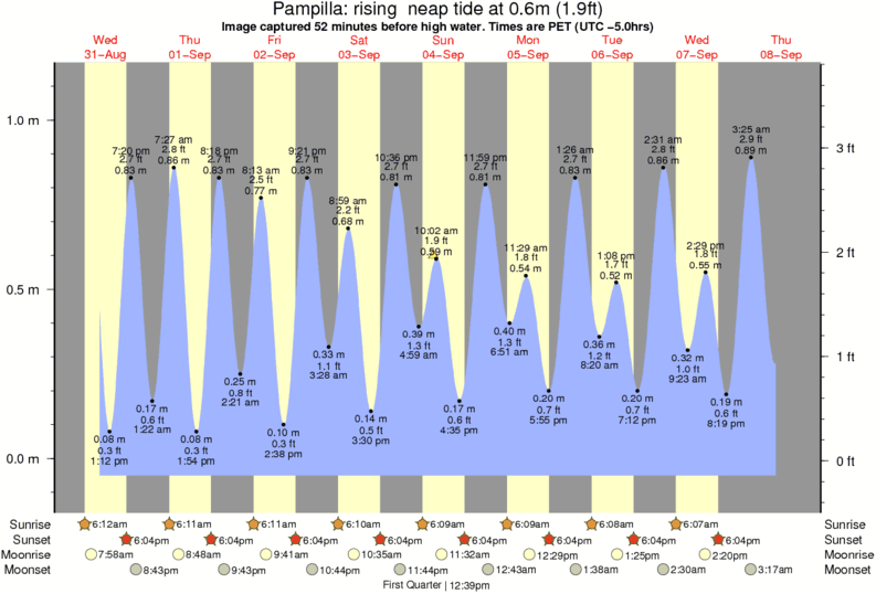 Image captured 52 minutes before high water (rising neap tide). Tide height was 0.6m (1.9 ft). Range 1.11m (3.6 ft). Toggle tide graph