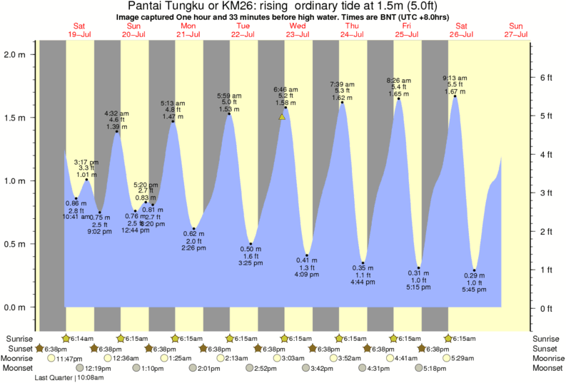 Image captured One hour and 33 minutes before high water (rising ordinary tide). Tide height was 1.5m (5.0 ft). Range 1.92m (6.3 ft). Toggle tide graph