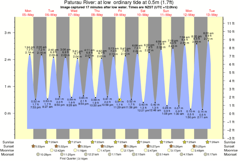 Forecast wind and swell just offshore from Paturau River around the time the photo was taken