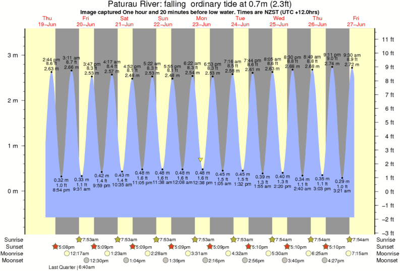 Forecast wind and swell just offshore from Paturau River around the time the photo was taken