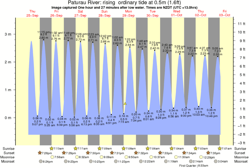 Forecast wind and swell just offshore from Paturau River around the time the photo was taken