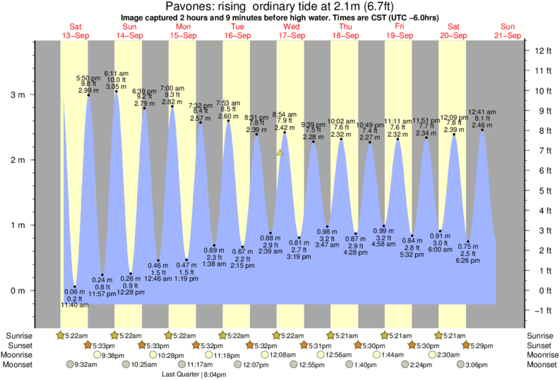 Image captured 2 hours and 9 minutes before high water (rising ordinary tide). Tide height was 2.1m (6.7 ft). Range 3.67m (12.0 ft). Toggle tide graph