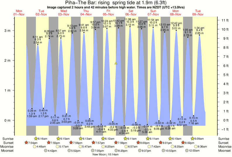 Forecast wind and swell just offshore from Piha-The Bar around the time the photo was taken