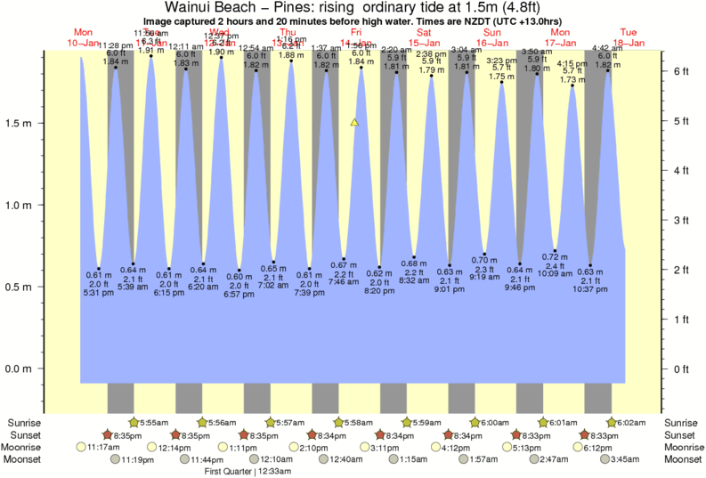 Forecast wind and swell just offshore from Wainui Beach - Pines around the time the photo was taken