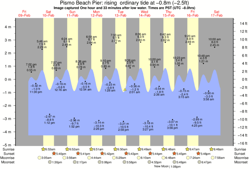 Forecast wind and swell just offshore from Pismo Beach Pier around the time the photo was taken