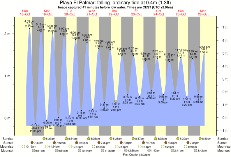 Forecast wind and swell just offshore from Playa El Palmar around the time the photo was taken