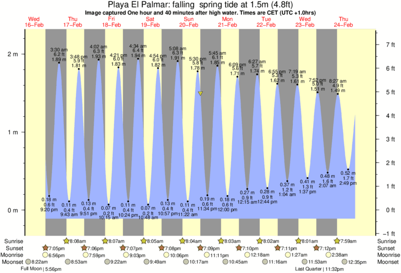 Forecast wind and swell just offshore from Playa El Palmar around the time the photo was taken