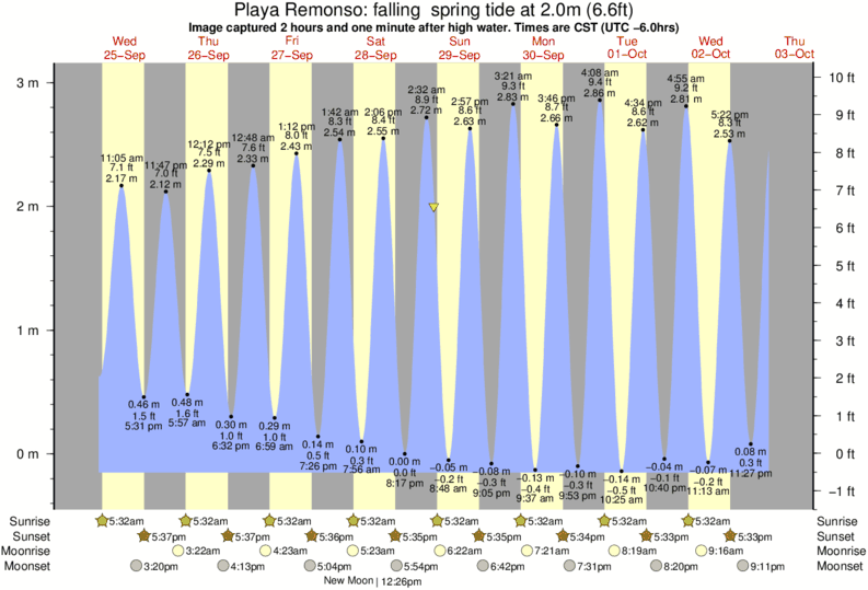 Image captured 2 hours and one minute after high water (falling spring tide). Tide height was 2.0m (6.6 ft). Range 3.01m (9.9 ft). Toggle tide graph
