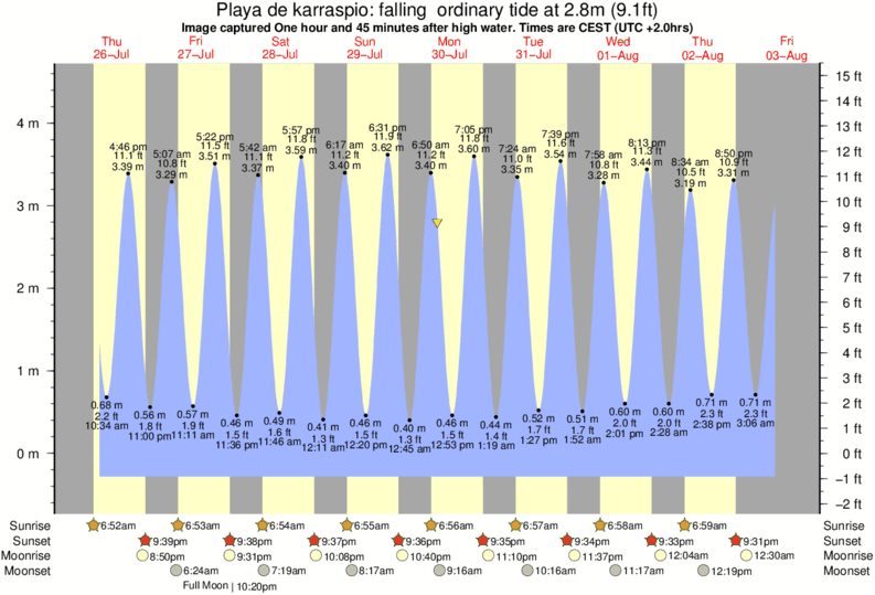 Image captured One hour and 45 minutes after high water (falling ordinary tide). Tide height was 2.8m (9.1 ft). Range 4.55m (14.9 ft). Toggle tide graph