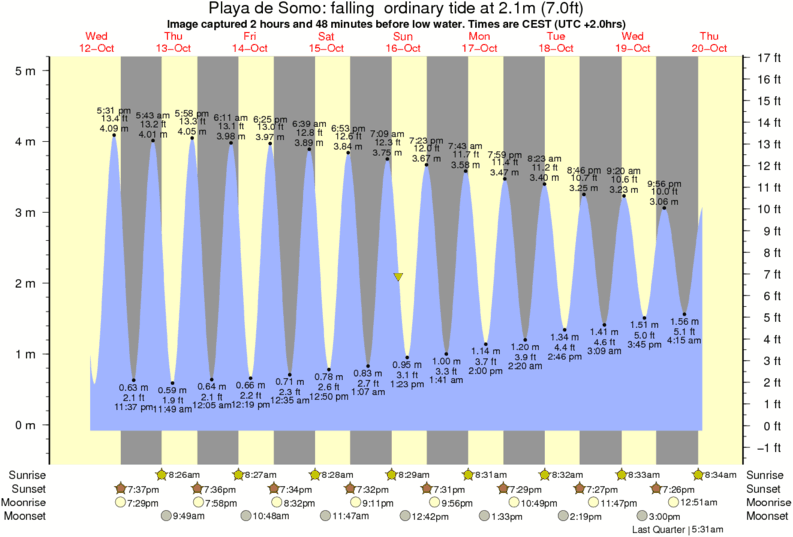 Image captured 2 hours and 48 minutes before low water (falling ordinary tide). Tide height was 2.1m (7.0 ft). Range 4.80m (15.7 ft). Toggle tide graph