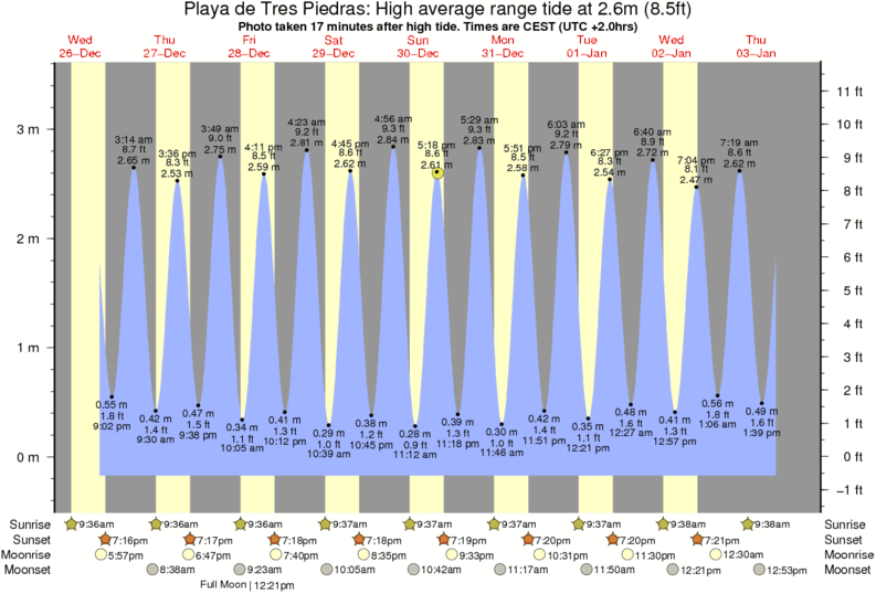 Forecast wind and swell just offshore from Playa de Tres Piedras around the time the photo was taken
