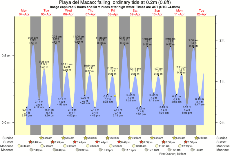 Forecast wind and swell just offshore from Playa del Macao around the time the photo was taken