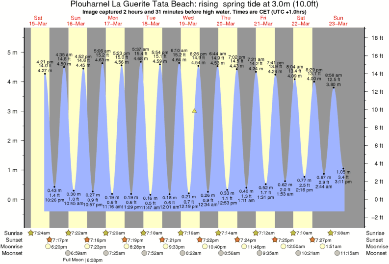 Image captured 2 hours and 31 minutes before high water (rising spring tide). Tide height was 3.0m (10.0 ft). Range 5.67m (18.6 ft). Toggle tide graph