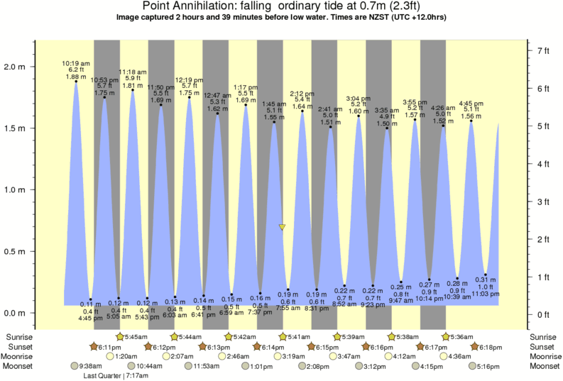 Image captured 2 hours and 39 minutes before low water (falling ordinary tide). Tide height was 0.7m (2.3 ft). Range 1.96m (6.4 ft). Toggle tide graph
