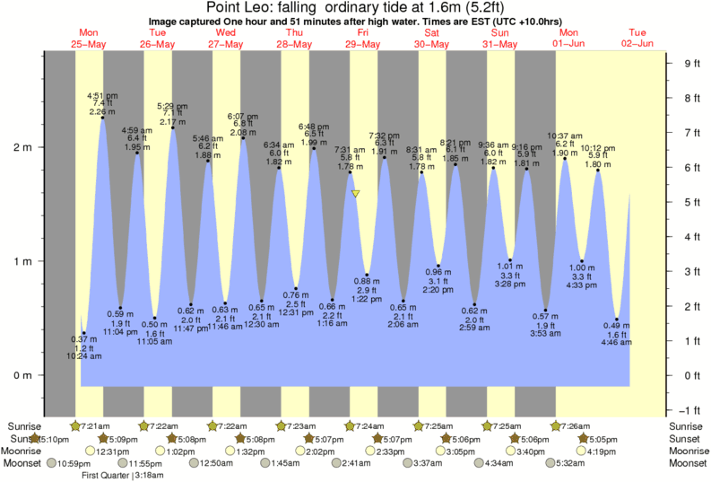 Image captured One hour and 51 minutes after high water (falling ordinary tide). Tide height was 1.6m (5.2 ft). Range 2.68m (8.8 ft). Toggle tide graph