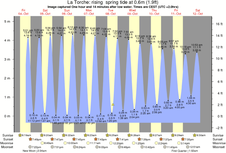 Image captured One hour and 14 minutes after low water (rising spring tide). Tide height was 0.6m (1.9 ft). Range 5.12m (16.8 ft). Toggle tide graph