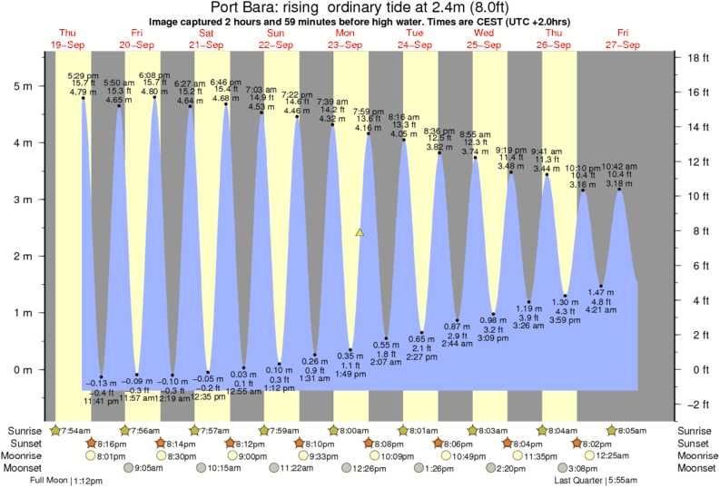 Image captured 2 hours and 59 minutes before high water (rising ordinary tide). Tide height was 2.4m (8.0 ft). Range 5.44m (17.8 ft). Toggle tide graph